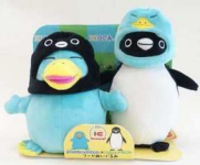 カモノハシのイコちゃんと Suica のペンギンが夢のコラボレーション!お互いのフェイスフードを被った、かわいらしいコラボぬいぐるみです。