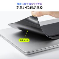28×13×0.3cm(幅×高さ×厚さ)のサイズで、裏面の粘着シートによりPCに貼り付けて使用します。粘着シートは剥がして再使用可能。なお、ザラザラした面には貼り付けられない場合があります。重量は約78g。