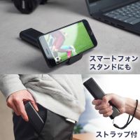 本体底面部を引き出すことで使えるスマホスタンド機能も搭載。最大65WのPDに対応するUSB Type-C to Cケーブルのほか、Lightning/Micro USB/USB Type-Aへの変換アタッチメントも付属します。