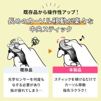 本体のリング部分に指を通して使う小型のBluetoothマウス。中央にスティック、その上下左右にボタンを1基ずつ備え、一般的なマウスと同様にカーソル移動やクリック、スクロールといった操作ができます。表面をなぞって操作する光学センサーではなく、スティックを採用したことで、長距離のカーソル移動が楽に行なえるとのこと。