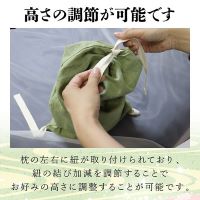 枕の左右に紐が取り付けられており、紐の結び加減を調節することでお好みの高さに調整することが可能です。