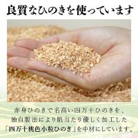 赤身ひのきで名高い四万十ひのきを、独自製法により肌当たり優しく加工した「四万十桃色小粒ひのき」を中材にしています。