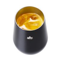 ワンポイントの白色メイプルリーフと、コロンとしたフォルムが特徴的な真空構造のステンレス製スタンブラー。容量は390mlで、350ml缶のビールやチューハイ、ジュースを丸ごと注ぐことができます。