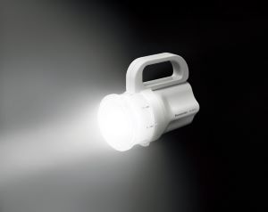 単一形から単四形の電池がどれでも1本でもあれば使用できる防災ライト。災害時などの有事の際に、使わない機器から電池を取り出して使えるほか、普段使いやアウトドアでも使用可能。
