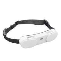前面部の電源ボタンを押すと内部2つのファンが回転し、上部2カ所から風が吹き出す。風の強さは電源ボタンで4段階に切り替えることができます。USB Type-Cによる充電式で、最大約4.5時間使用可能。充電時間は約4時間。