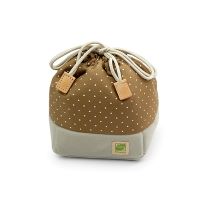 帆布ブラック、帆布オリーブ、水玉ネイビー、水玉キャメルの4モデルがあります。表地はコットン、裏地は柔らかく厚みのあるポリエステル生地を使用しています。