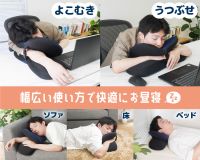 横向き寝、うつ伏せ寝などあらゆる体勢でのお昼寝をサポート。また、デスクだけでなくソファ、床、ベッドでの仮眠でも快適に使うことができます。バックルの着脱だけで簡単に用途を切り替え。好きな時にすぐにお昼寝まくらに変身させられるのが嬉しいポイント。