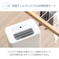 また部屋干しをサポートする「衣類乾燥モード」も搭載。ハイパワーな除湿に風力を強くして連続運転を行なうことで、梅雨時期や雨の日でも衣服表面をパリッと乾燥するように仕上げます。タンクの容量は3Lで、満水になった場合には赤いランプが点灯し自動で運転を停止。