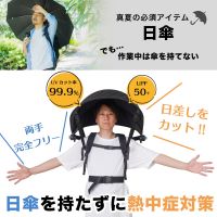 傘生地はUVカット率99.9%、UPF50+で、雨の日も使える晴雨兼用。通常の傘のように手に持つ必要がなく、両手が空いた状態でしっかりと日差しを遮ることが可能。夏の炎天下での農作業や釣り、スポーツ観戦や撮影時、屋外作業など幅広いシーンで活躍します。