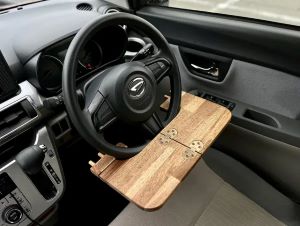 ハンドルに取り付けると車が書斎に!?「折りたためる車載デスク」