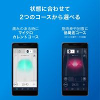 収納ケースも従来のハードタイプからコンパクトなソフトタイプに刷新。本体と充電器、充電ケーブルを一緒に収納して持ち運べるため、遠征時や外出時にも使えます。好みに合わせて低周波とマイクロカレントの2つのコースを選択可能。