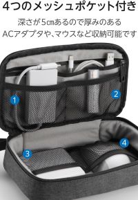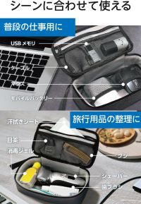 4つのメッシュポケットを備え、5cmのマチがある1気室ポーチ。ファスナーポケットも用意され、内部はゴムバンドがあるため、ケーブル類がまとめやすいのが特徴。