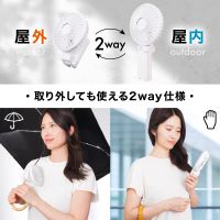 角度調整できるから自分の顔にベストな角度で風を送ることができます。取り外した後もハンディファンになる2way仕様。また、本体はUSB充電式。使用中はケーブルレスだからすっきりスマートに使うことができます。