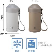 使い方はとても簡単!キャップを外してボトルをそのまま入れるだけ。ストラップ付きなので持ち運びがしやすく、色々なところに持って行って使えます。ねじ込み式のカバーキャップなので、様々な形のペットボトルにフィットします。カラーはベージュとグレーの2色。