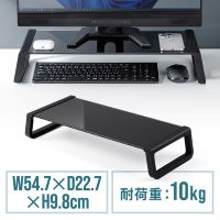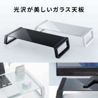 モニター台として使用すれば、モニターを浮かせ、机の上に収納スペースを増やすことができます。厚さ6mmの高耐久ガラスを使用しているため、長時間使用しても傷や変形が少ない。