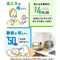 蓋は90度に開けられるスライド開閉式で、開閉途中でも蓋が止まるため食器が入れやすい仕様。上部分の高さもほとんど必要ないため、設置しやすい。さらに約50dbの静音設計で生活を妨げないほか、電気代も1回あたり約4円と経済的です。
