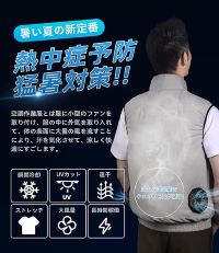 2基のファンを搭載する男女兼用の空調ベスト。ファンは5段階の風量調節に対応し、付属の20,000mAhバッテリで最長16時間駆動できます。ベストはUVカット仕様で、ファンやバッテリを取り外しでき、洗濯も可能。サイズは、M/L/XL/XL2/XL3の全5種類を用意。