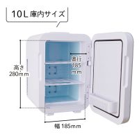 静音性の高いペルチェ冷却式(ペルチェ素子2枚)を採用。背面のスライドスイッチで保冷(約7℃)と保温(約30℃)を切り替えられます。容量10Lサイズで、350ml缶なら11本、500mlペットボトルなら4本、1L紙パックなら4本入を収納可能です。