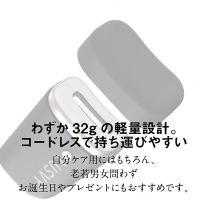 わずか32gの軽量設計かつコードレスで持ち運びもしやすく、さっと使うことができます。自分ケア用にはもちろん、老若男女問わずお誕生日やプレゼントにもおすすめです。