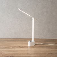 使用しない際にはアームをたたんでフラットに収納。調光は20段階、調色は3段階の切り替えが可能で、ダイヤル操作により直感的な明るさ・色調の調整が行なえます。本体サイズは339×53×387mm(幅×奥行き×高さ)。カラーはホワイトとブラック。