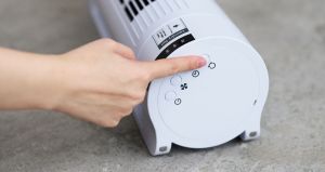 部屋干し助ける床置きファン、真下から送風