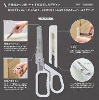 レイメイ藤井は、「マグネット付き多機能ハサミ ZACCC(ザック)」を8月中旬に発売します。開梱カッター刃・解体ノコギリ刃・目盛り付きハサミ刃という3種類の刃を搭載し、握り方を変えるだけで用途に応じた使い分けができるハサミ。段ボールの開梱・解体ニーズに応えるために開発されました。価格はスタンダードモデルが1,650円、チタンコートモデルが1,980円。