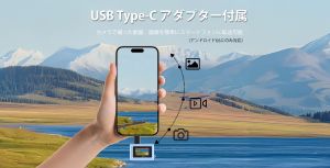 撮像素子には、有効画素数約100万画素の1/4型CMOSセンサーを採用。充電やPC接続用のUSB Type-Cを採用。Androidスマートフォンに接続し、画像を転送するためのアダプターも同梱しています。