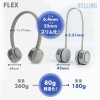 ネックバンドファン Rollingのアームは、スリムなシリコン素材。ヘッドにぐるぐると巻きつけるだけで、コンパクトに収納できます。アーム収納時はポケットにもサッと入るほどのコンパクトサイズで、荷物になりません。くるっと巻けばバッグなどにも取り付けられます。
