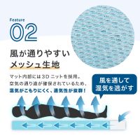 風が通りやすいメッシュ生地、そしてマット内部には3Dニットを採用。空気の通り道が確保されているため、湿気がこもりにくいのが特徴の1つです。