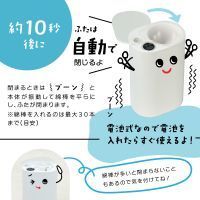 約10秒後にふたが閉じ、また、閉じる際には軽く振動して綿棒を整える工夫もなされているとのこと。サイズは幅95×奥行70×高さ155mm。重量は約300g。電源は単三形アルカリ乾電池2本。セット内容は本体、日本語取扱説明書で、電池は付属しません。