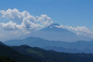 8月19日(火)に大菩薩嶺に登ってきました。甲斐大和駅からバスに乗り、約40分で登山口がある上日川峠に到着しました。強い日差しが遮られた森の中の登山道を上り、福ちゃん荘の分岐から大菩薩峠を目指しました。改山荘を抜け、大菩薩峠に着くと黒い富士山が半分見えました。さらに進み稜線に出ると山頂付近に雲がかかった富士山の全容を見ることが出来ました。コントラストの強い夏の日に映える大菩薩湖や山の背後に浮かぶ真っ白な雲を眺めながら昼食を取り、大菩薩嶺を目指しました。岩場をいくつか越えて歩いて行くと山頂手前の下山道の分岐のところに人慣れした鹿が草を食べていました。木々に囲まれた山頂は視界ゼロ、百名山にしては地味な山頂標識を写真に撮ってから分岐まで戻りました。そこそこ長いガレ場、ザレ場を下り、唐松の林を抜け、福ちゃん荘を経由して上日川峠に戻りました。