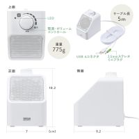 手のひらに乗るコンパクトサイズで、耳に音が届きやすい斜め設計を採用。大きなダイヤル式のボリュームコントロールを搭載、音量調整などの操作も簡単に行なえます。テレビとの接続は3.5mmステレオミニプラグで、電源はUSB Type-A給電式。本体に3.5mmステレオミニプラグとUSB Type-A端子が付いた二股ケーブルを備え、ケーブルを差すだけで使用できます。ケーブル長は約5m。