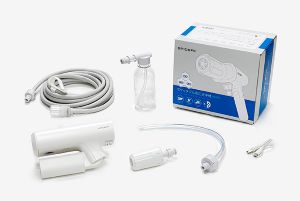 水道とコンセント近くになくても使える、白い洗浄機