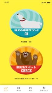 「BowBear」は、熊の出没対策に使えるアプリ。「熊出没スポットCHECK」と「猟犬の咆哮サウンド」という2つの機能があり、それぞれ大きなボタンをタップするだけで使えるシンプルなつくり。大まかには、前者がアウトドアに出かける前に使う機能、後者が山登りなどレジャーの最中に使う機能となります。