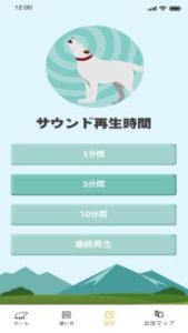 もう1つの「猟犬の咆哮サウンド」は、熊避けを目的とした音声再生機能。ボタンをタップすると猟犬の鳴き声や銃声などが響く生々しいサウンドが再生され、熊の接近を防ぐ効果を狙えるようだ。再生時間は1分、5分、10分、連続再生(時間制限なし)の4段階で指定可能となっています。