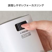 スタンドが本体と一体化しているため複雑な設置作業は不要で、見たい場所に置いてすぐに投影でき、簡単に角度調整も可能で、壁や天井など状況に合わせた投影が可能。ピント合わせは本体のフォーカスリングにより行います。垂直方向に画面のゆがみが生じた場合、自動で補正する機能が搭載されています。