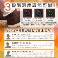 靴底はしっかり厚いゴムソールで滑りにくく底冷えしにくい素材です。3段階で温度の調整が可能です。5000mAhモバイルバッテリー(別売り)使用時、最大約8時間と長時間使用することができます。 (弱使用の場合)