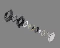 機能面では、フェイスには「5600」と同じ6桁表示のデジタル液晶を搭載。2つの時刻帯を表示できる「デュアルタイム」、「ストップウォッチ」、「オートカレンダー」などの基本機能を備えています。外装は、ベゼルやバンドの複雑な造形を射出成型技術によって細部まで忠実に再現。ボタン、美錠、裏蓋には通常のG-SHOCKと同じステンレス素材を使用。樹脂モデル同様にバンド穴式を採用し、指のサイズに合わせて調整できます。