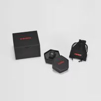 Gマークをかたどったディスプレイスタンドやコレクション用のケースが付属。プレゼントなどにも好適。ケースサイズは23.4×20×7.5mm、本体重量は6g。バンドの装着サイズは48~82mm。本体カラーはブラック、レッド、イエローの3色。