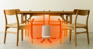 エアコンの温風が届きにくいテーブルや机の下で、360°全方位に温風が広がり、 足元を暖めるスポットヒーター。家庭のダイニングテーブルが、布団のないこたつへ早替わりします。