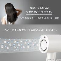 高効率ブラシレスDCモーターの採用による速乾性の高さも特徴。従来機種と比較して、最大で約1.3倍の乾燥性能を実現。風速は3段階に調節できます。風温は「高(51℃)/中(43℃)/ソフトケアモード(42℃)」に切り替え可能。また、温風と冷風を数秒おきに自動で切り替え、髪ダメージを軽減してツヤを最大約2.7倍向上させる「温冷循環モード」も搭載。すべての運転モードでナノうるおいミストが自動的に放出されるため、特別なケアを意識せず自然にヘアケアができます。