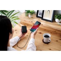 側面の電源ボタンを押すことで、モバイルバッテリー本体が振動し、バッテリー残量を5段階で知らせます。モバイルバッテリー本体の充電時には、充電開始時のほか、ケーブルを挿した状態で充電できていない場合などに、振動で充電状況を知らせます。電源ボタンの周りには凹凸加工が施されており、触るだけでボタンの位置を把握できるようになっています。
