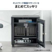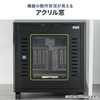 ネットワーク機器やNAS、録画機器などをまとめて収納できるスチール製の機器収納ボックス。前扉がアクリル窓になっているため、扉を閉めたままでも機器の動作状況を確認しやすい。上部には排熱用ファン(別売り)を取り付けられます。