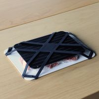 シービージャパンは、置くだけで急速解凍できる解凍プレートに、「解凍ブーストバンド」をセットした新モデル「atomico 解凍プレート バンド付き S/M」を11月に発売しました。「atomico 解凍プレート バンド付き S/M」は、熱伝導性の高いアルミプレートに食材をのせることで、自然解凍よりも早く解凍できるアイテム。専用シリコンバンドで食材を押さえることで、より短時間で解凍できるようにしています。食材をプレートに密着させて接触面を最大化するため、解凍効率が大幅にアップします。また、バンドで抑えるため、食材がやわらかくなってもずれにくい。価格はSサイズが2,090円、Mサイズが2,530円。