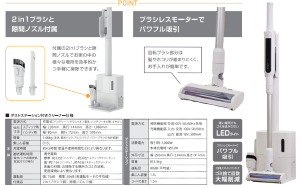 ハンディクリーナーとしても使用でき、付属の「2 in 1ブラシ」と「隙間ノズル」を使い分けることで、さまざまな場所での掃除に対応します。スティッククリーナーの本体サイズは約228×141×1,080mm(幅×奥行き×高さ)、重さは約1.46kg。ステーション収納時のサイズは約292×234×1,095mm(同)。ダストステーションの重さは約3.3kg。消費電力は1,000W。クリーナー本体の集塵容積は約0.15L。充電時間は約4.5時間。