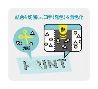 感熱紙には2つの材料が入っていて、熱が加わると、この2つが結合し発色します。本品のインキには、この結合を切断する作用があるため、印字を消すことが可能。なお、感熱紙の種類によっては、文字が消えにくい場合があるとのこと。また、消した文字は元に戻せず、インキの補充は不可。