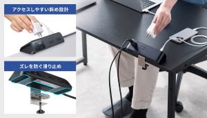 デスクに固定して片手で簡単に抜き差しできる「クランプ固定式電源タップ」