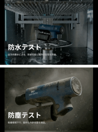 POWASH(TM)︎は、屋外での使用を前提にIP64の防水・防塵設計を採用。砂やホコリが舞うキャンプ場や駐車場でも安心して使用できます。水しぶきがかかる状況や、地面に置いて使うシーンを想定した構造により、アウトドアや外遊びの後処理を“気にせず使える道具”として成立させました。