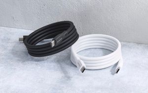 ケーブルの線材に磁石を練り込んでおり、巻くだけできれいにまとまります。また、スチール面に吸着するため、スチール製のデスクや棚などに固定させた配線もできます。60WのUSB PDに対応し、データ伝送はUSB 2.0に対応。