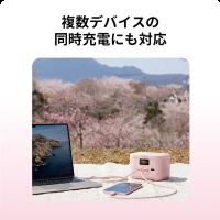 出力ポートはUSB Type-C×2、USB Type-A×1。USB Type-Cポートは単ポート最大100Wの出力に対応し、カメラだけでなくノートPCの急速充電も行えます。新色の発売を記念し、直販サイトでは対象製品が最大35%OFFになるキャンペーンを実施する。また、先着1,000名にオリジナル桜ステッカーをプレゼントします。